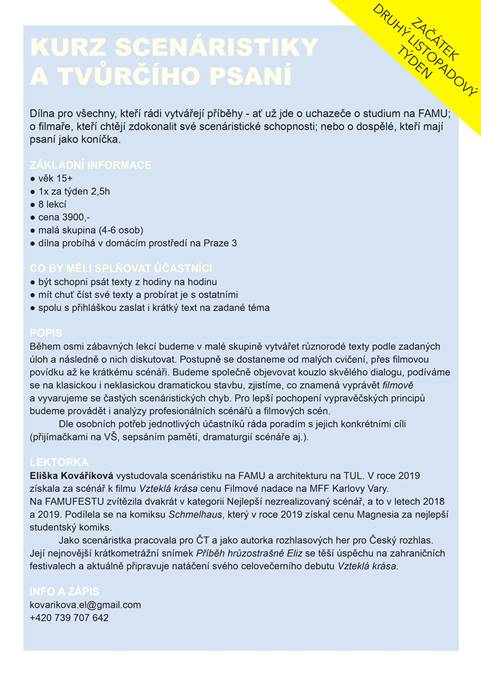 *Subject:* Fwd: Kurzy scenáristiky - příprava pro uchazeče na FAMU i jako